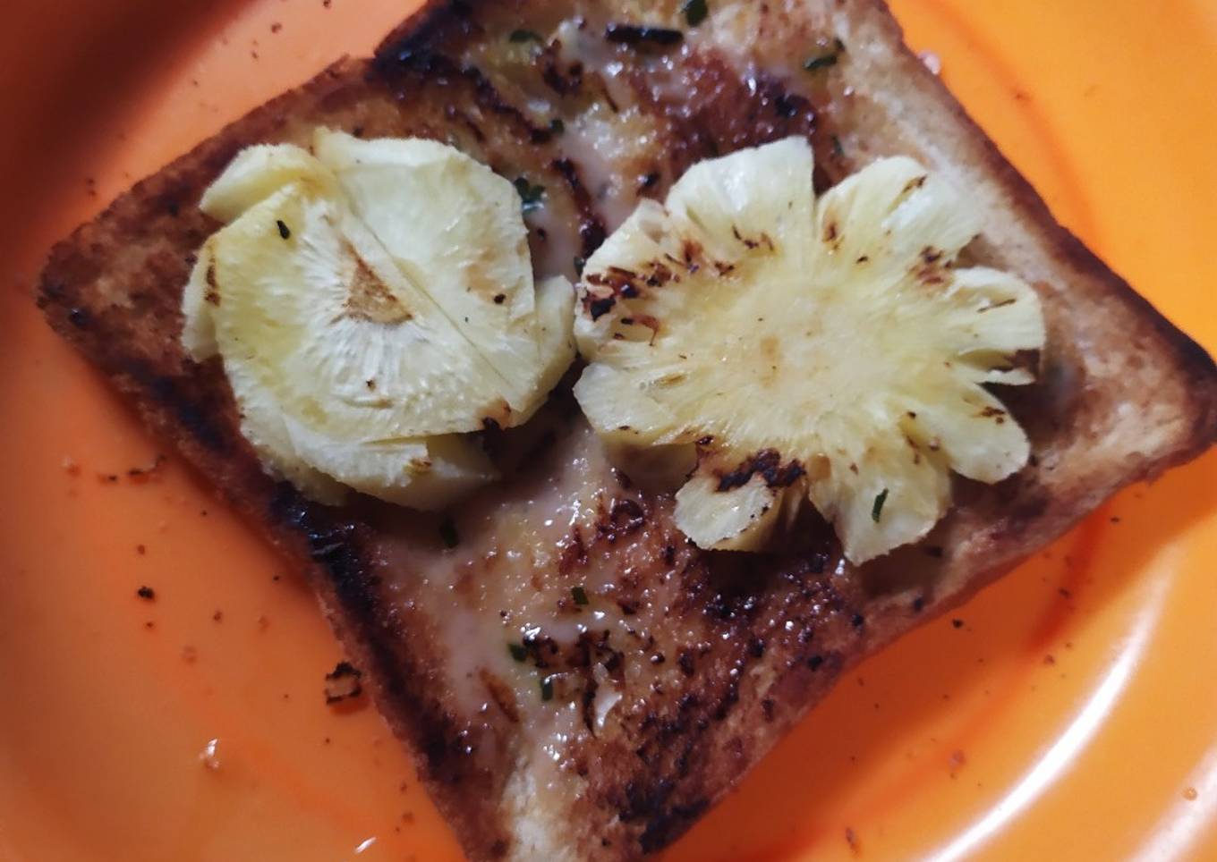 - Olesi roti yang sudah dipanggang dengan mayones wijen, lalu taruh nanas panggang nya. Siap dimakan ������